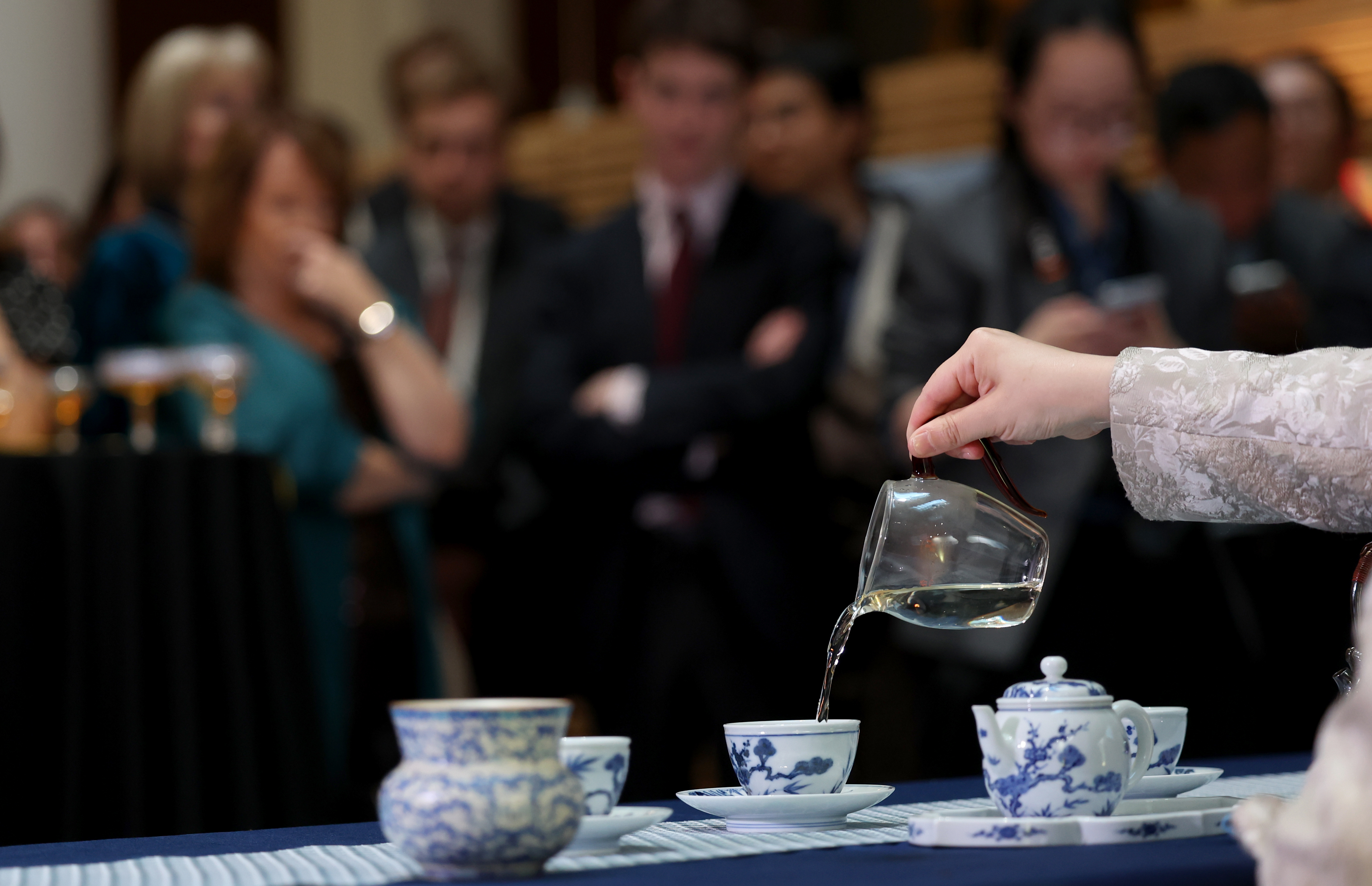 这是4月24日在英国伦敦举行的“城市茶客厅”暨“魅力上海”城市形象推广活动上拍摄的茶艺表演。新华社记者 李颖 摄