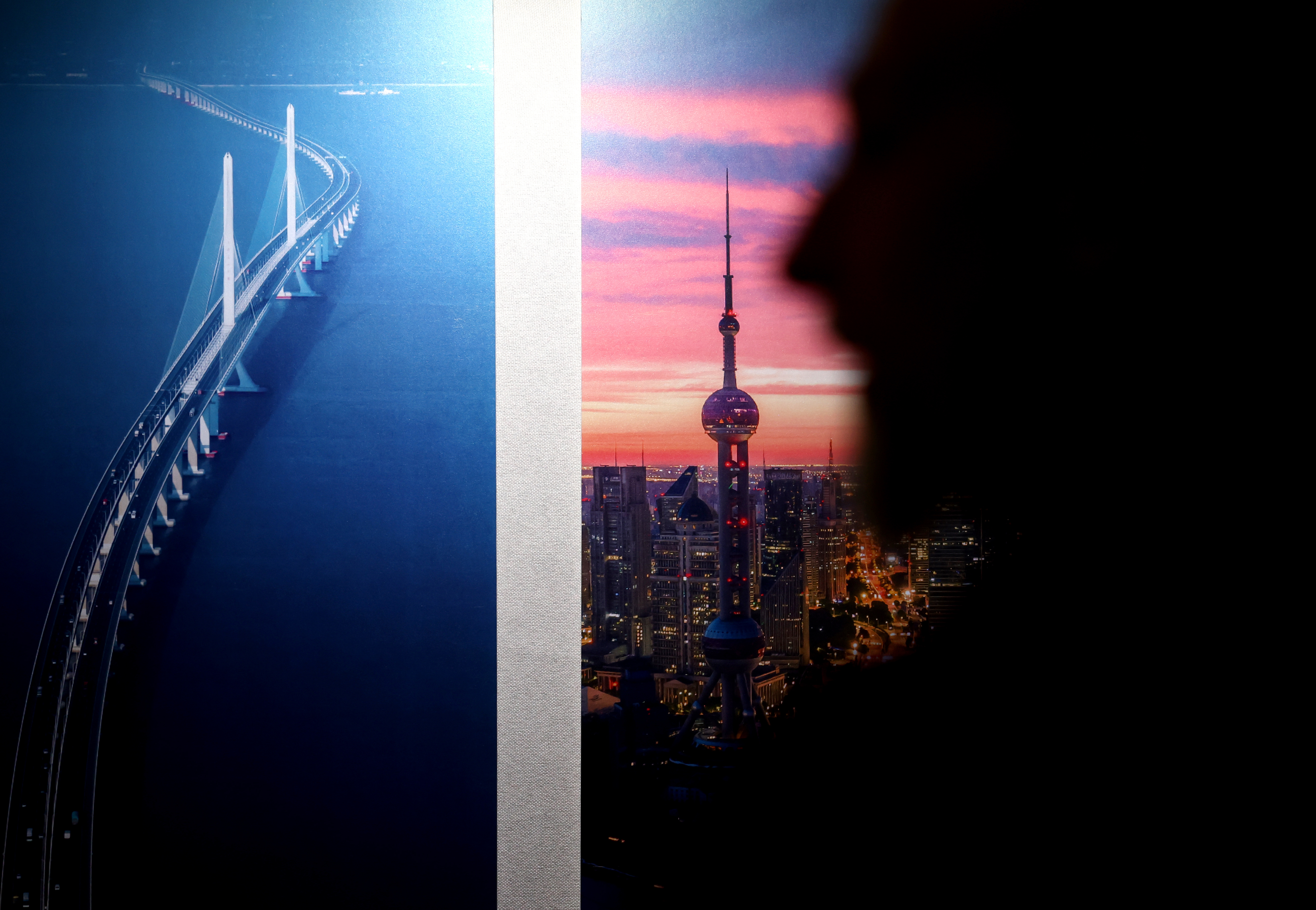 4月24日,在英国伦敦举行的“城市茶客厅”暨“魅力上海”城市形象推广活动上国内大的证券公司,一名男子参观“品茗上海·镜头里的故事”上海城市影像展。新华社记者 李颖 摄