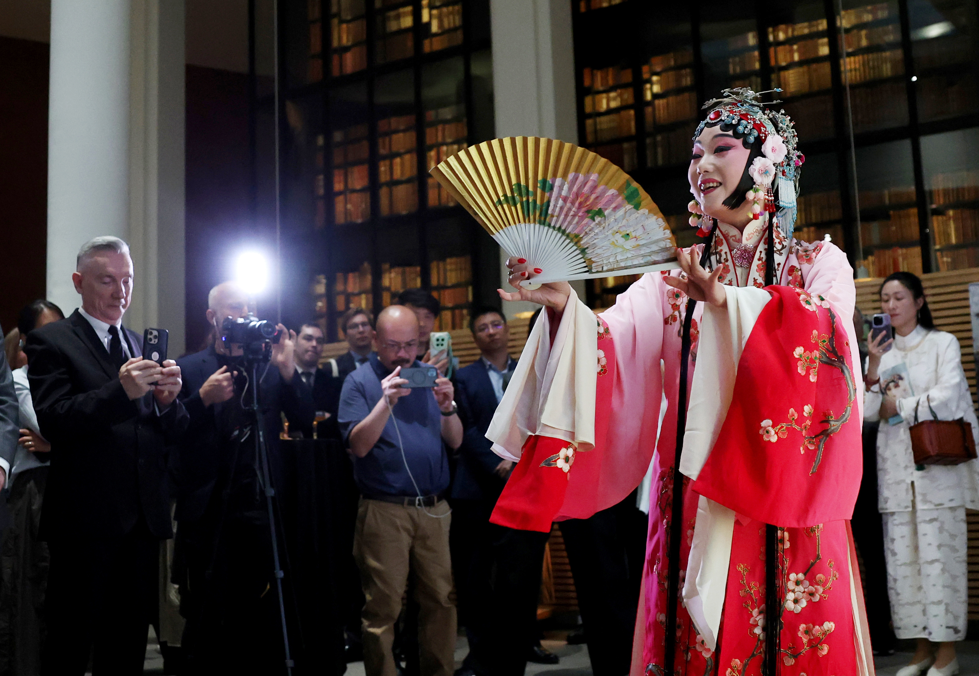 4月24日,在英国伦敦举行的“城市茶客厅”暨“魅力上海”城市形象推广活动上,人们观看昆曲表演。新华社记者 李颖 摄
